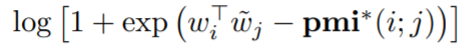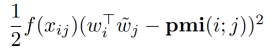 즉, 단어 i, j가 자주 동시에 등장할수록 벡터 내적 값과 PMI 값이 같아지도록 만든다는 것이다.