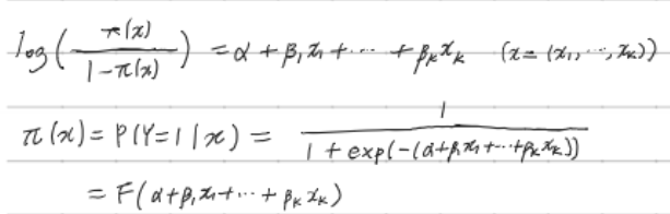 - exp(β1) : 나머지 변수(x1,...,xk)가 주어질 때 x1이 한단위 증가할 때마다 성공 오즈(Y=1)가 몇 배 증가하는지 나타내는 값