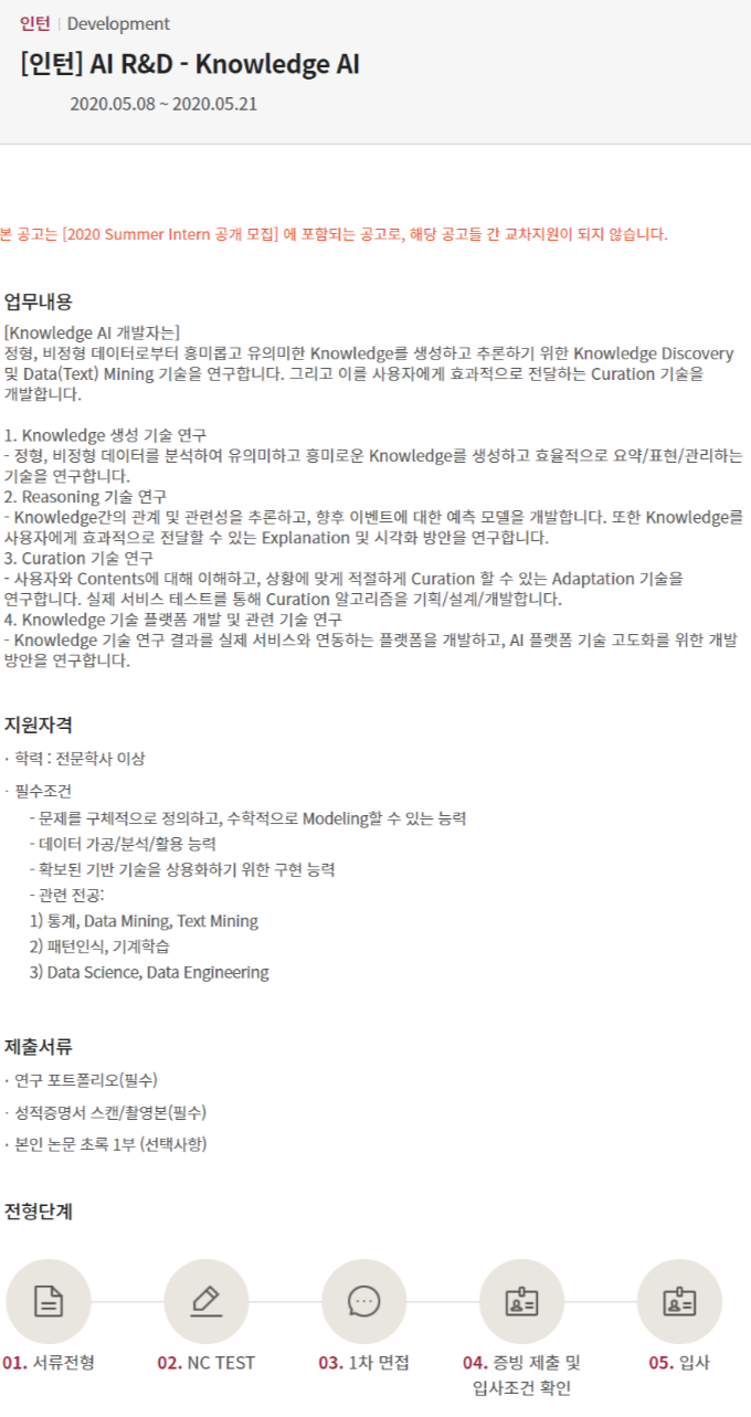 지원 직군 : AI R&D - Knowledge AI (여기를 넣은 이유는... 다른 직군은 내가 지원할 수 없었기에....😅)