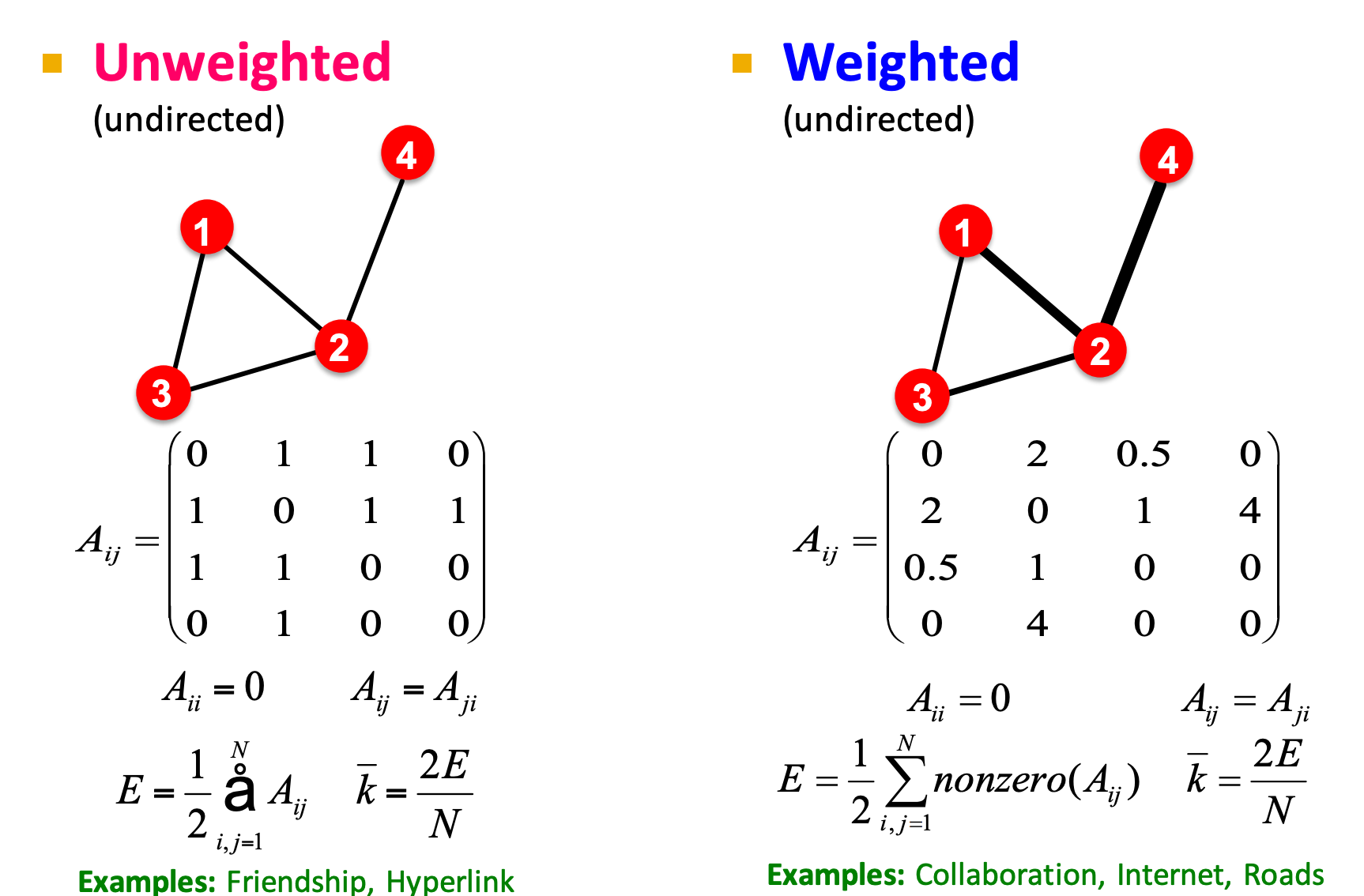 → 인접 행렬에서 0 / 1 대신 가중치로 표현 - Unweighted Graph : node나 edge에 가중치 부여 X
