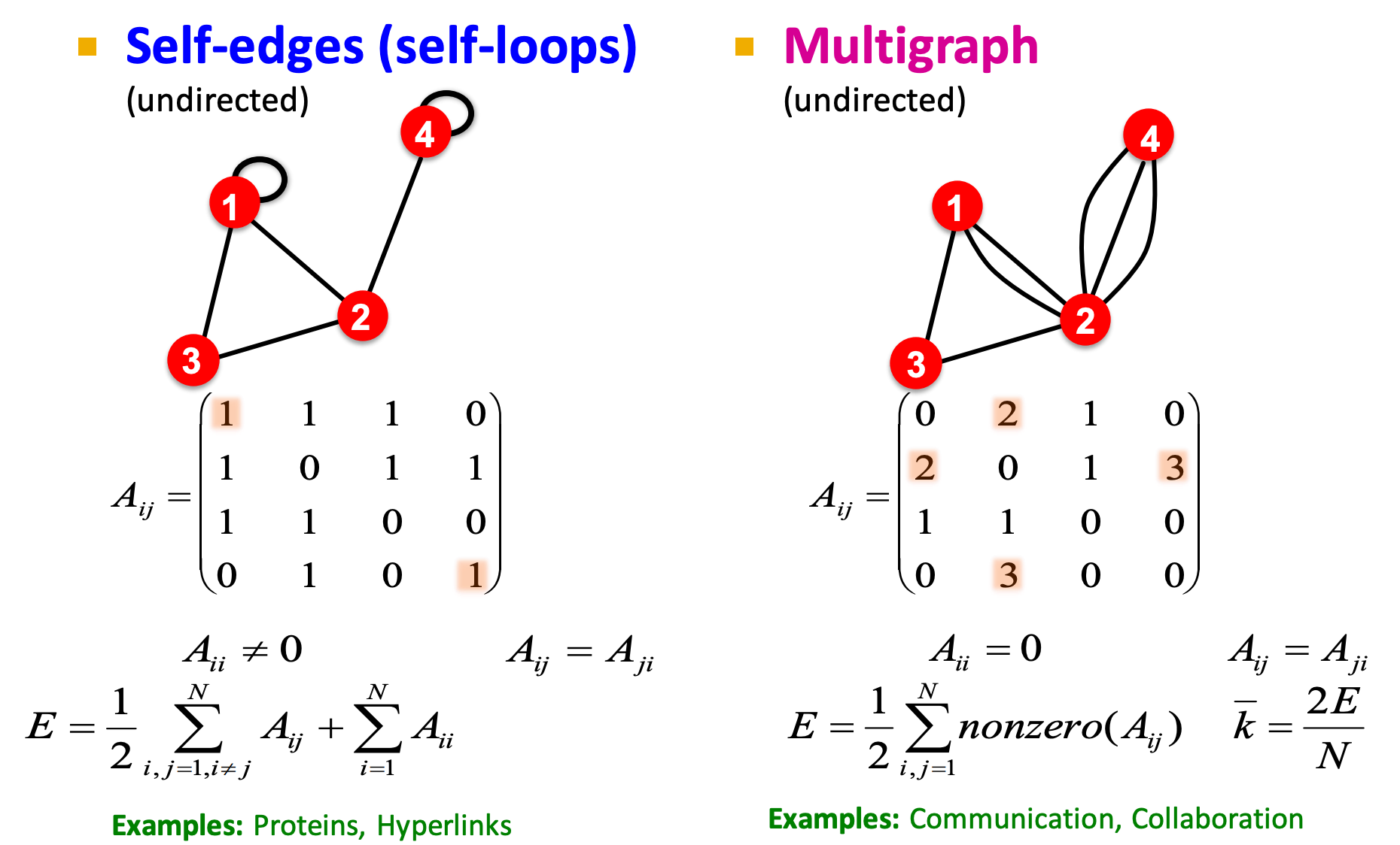 - self-edges (self-loops) : 자신의 node로 향하는 edge가 있는 그래프