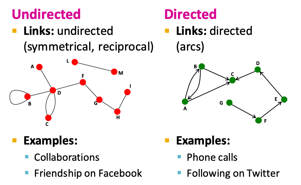 - Undirected Graph : link에 방향이 없는 symmetric한 그래프