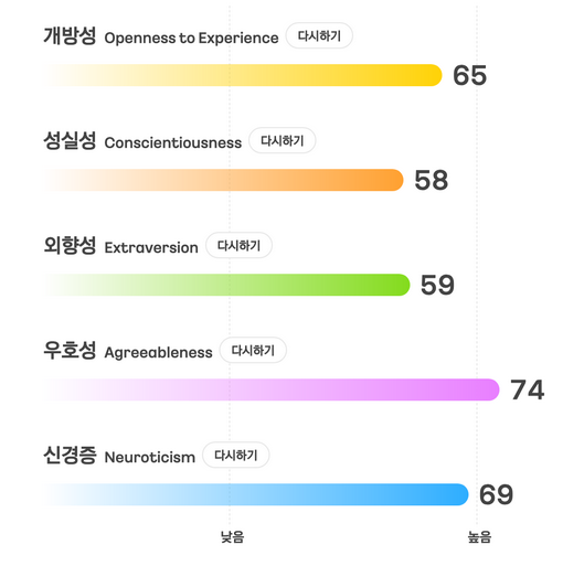 그리고 무엇보다 자기 객관화가 잘 되어계신 분이라는 생각이 들었는데, 그런 부분이 드러나 Big 5 테스트를 한번 해보았다.