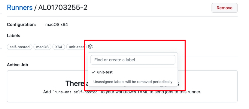 만약 각 job마다 다른 self-hosted runner를 설정하고 싶다면, 아래와 같이 runner 설정에서 labels를 추가해준 뒤
