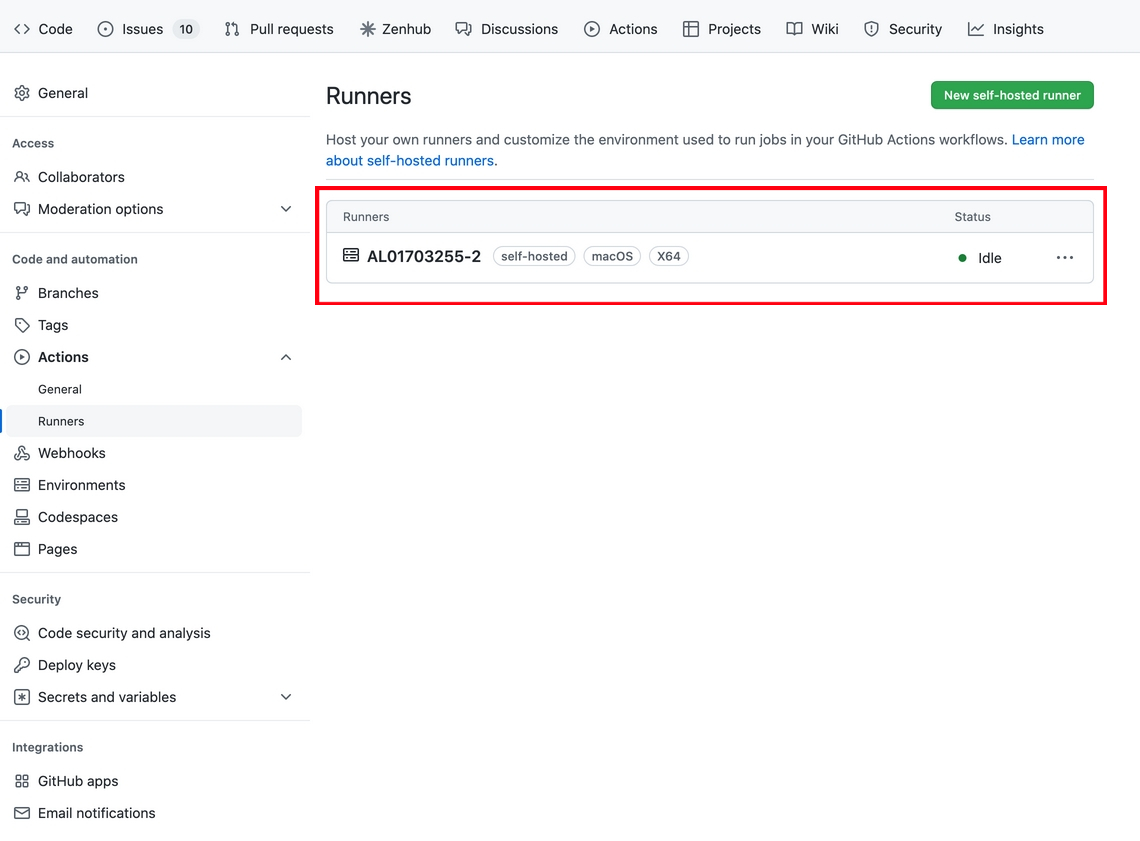 아래와 같이 새로운 Runner가 추가된 것을 볼 수 있다.