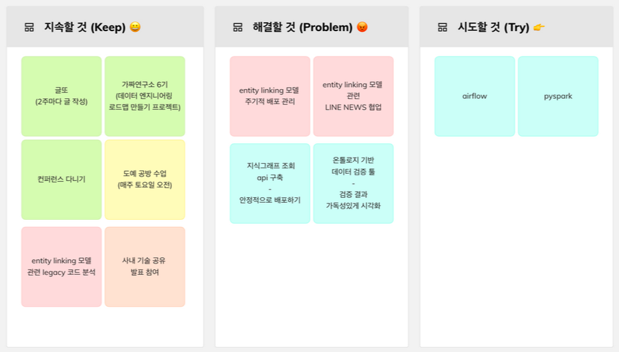 비록 회고라는게 어떤 틀을 정해서 해야한다라고 생각하진 않지만,