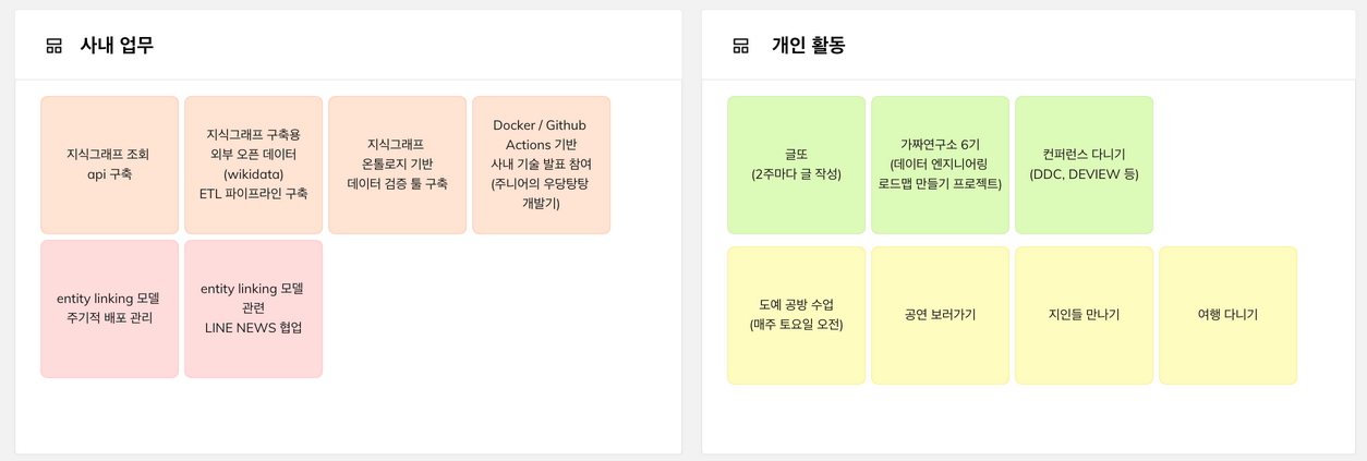 크게 회사 업무와 개인적인 활동으로 나눠봤다.