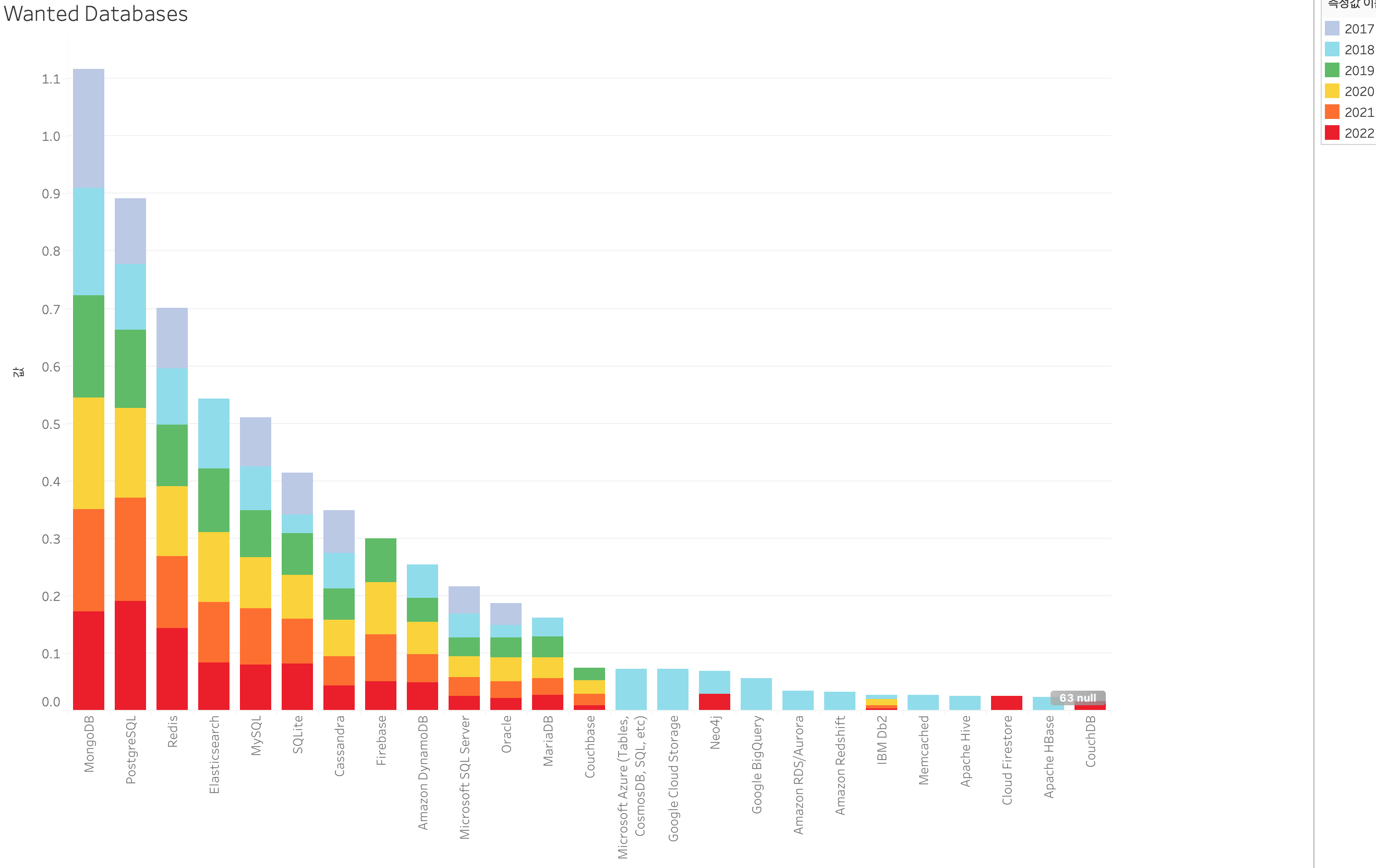 전체적으로는 1위를 차지했던 MongoDB가 전반적인 추세로는 니즈가 하락하고 있었다.