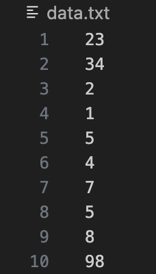 실행할 파일(data.txt)에는 평균을 내기 위한 숫자가 입력되어 있다.