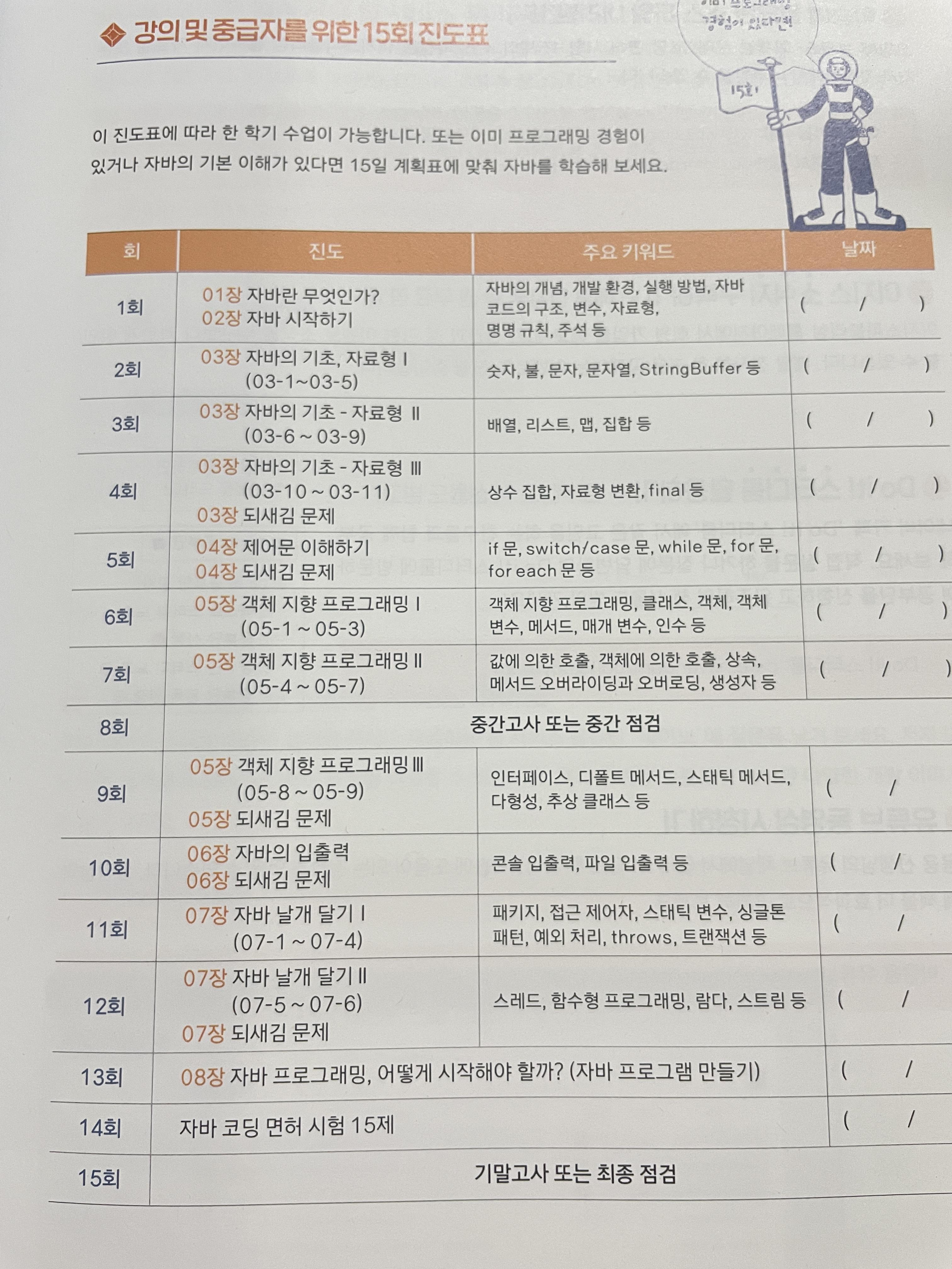 다만, 책에서도 처음 프로그래밍을 배우는 사람에게 자바로 입문하는 것은 비추천한다고 적혀있듯이 어느 정도 1-2가지 언어를 할 줄 아는 개발자들에게 빠르게 자바를 익히기 위해 추천할 만한 책이다. 완전히 처음 프로그래밍을 시작하는 초심자에게는 파이썬 등 좀 더 이해하기 쉬운 언어부터 시작하는 것이 좋을 수도 있을 것 같다. 그래도 기초적인 내용부터 자세하게 다루고 있으므로 자바에 관심이 있었지만 처음 배워보려는 사람들에게는 적극 추천한다!😃