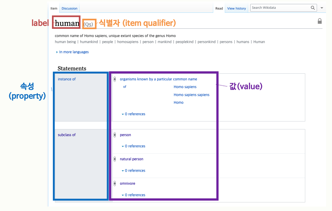 각 객체에 대한 속성 및 값 정보를 제공하고 있는 위키데이터(Wikidata)를 기반으로 진행하게 되었다.
