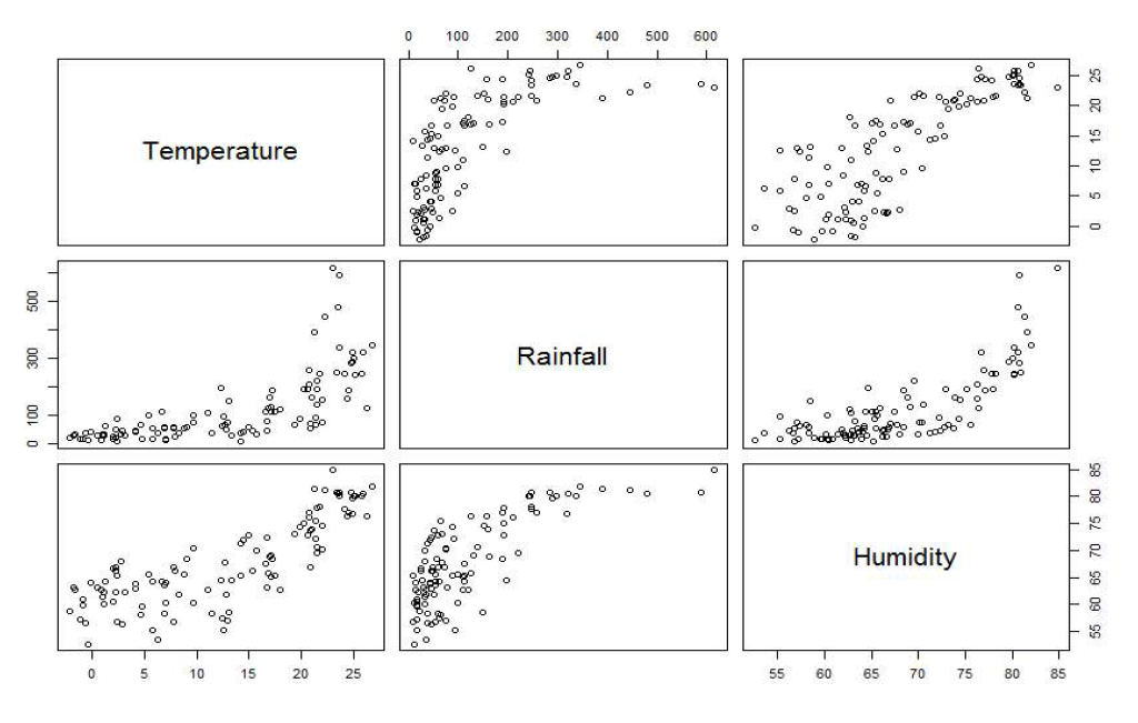 3개 이상의 수치변수를 두 변수씩 쌍으로 조합해서 산점도를 행렬 형태로 표시