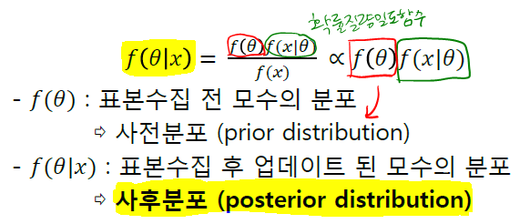 예를 들어, θ가 관심모수이고 x1, ... , xn이 표본관측값이라면 관심있는 분포는 f(θ|x1, ... ,xn)인 것이다.