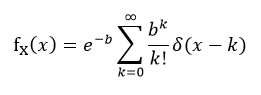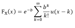 포아송 분포는 이항 랜덤변수에서 N→∞, p→0이고 Np=b를 만족할 때의 분포이며, 밀도함수 및 분포함수는 아래와 같다.