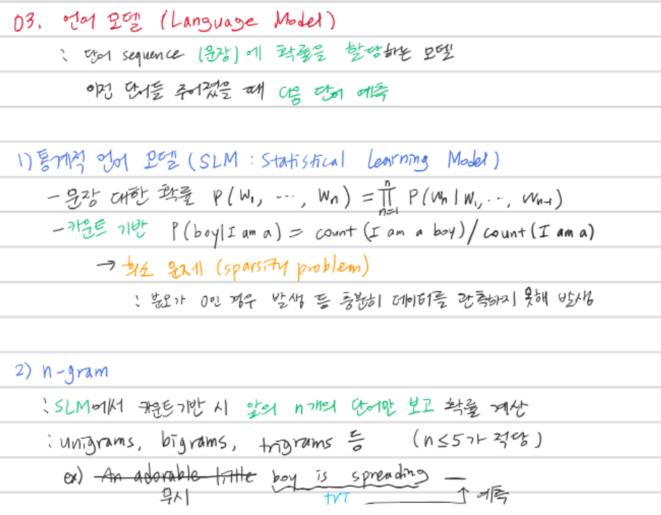 이번에는 어떤 단어들(문장)이 주어졌을 때 다음 단어를 예측하는 모델 중 통계에 기반한 기초적인 모델인 SLM, n-gram 등에 대해 알아보자.