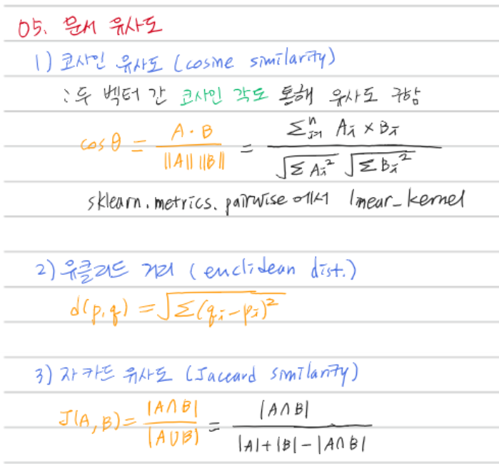 이번에는 문서 유사도를 구하는 공식들인 코사인 유사도(cosine similarity), 유클리드 거리(euclidean distance), 자카드 유사도(Jaccard similarity)에 대해 알아보자.
