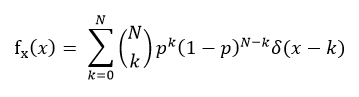 베르누이 시행 실험에 적용되는 이항 분포의 밀도함수 및 분포함수는 아래와 같다.