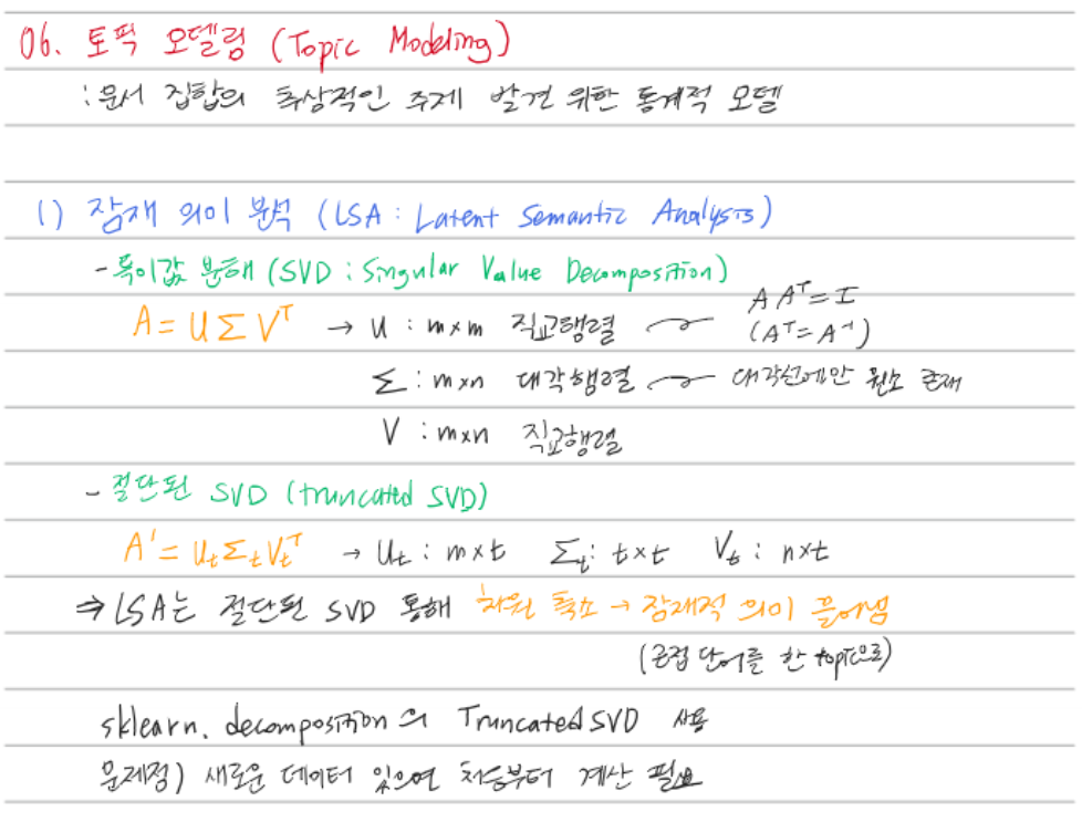 이번에는 문서의 주제를 찾아주는 토픽 모델링(Topic Modeling) 기법인 잠재 의미 분석 (LSA: Latent Semantic Analysis)과 잠재 디레클레 할당 (LDA: Latent Dirichlet Allocation)에 대해 정리해보았다.