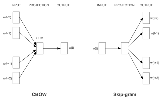 Word2Vec의 종류를 나누자면 다음과 같으며, 서로 학습되는 과정이 반대된다.